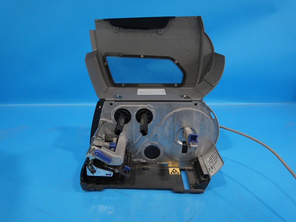 • Industrial label printer with fast thermal transfer and direct thermal printing capabilities.